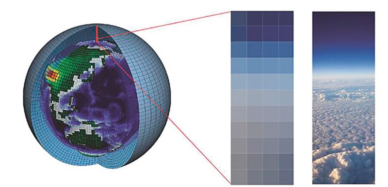 I en klimamodel deles Jordens atmosfære op i tredimensionalt net af celler, så vind, temperatur, fugt og tryk kan beregnes for alle steder på kloden. Jo mindre de forbundne celler er, desto flere beregninger skal computeren udføre.