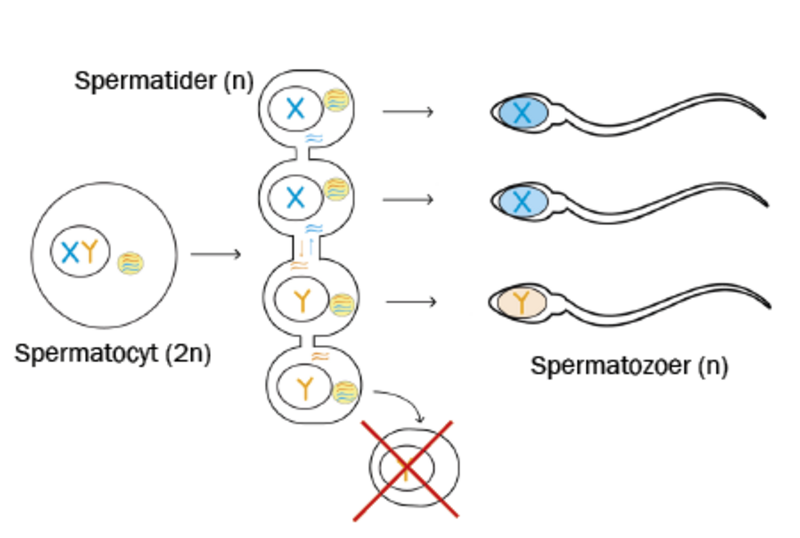 Under spermatogenesen bliver kønskromosomerne X og Y fordelt mellem sædcellerne. Alt andet lige burde der derfor være lige mange sædceller med X og med Y. Ligesom i alle andre aspekter af livet sker tingene dog ikke altid, som forventet, og evolutionen er også på spil i spermatogenesen, hvor kampen mellem X- og Y-kromosomerne kan lede til, at fordelingen af X og Y ikke altid er lige.