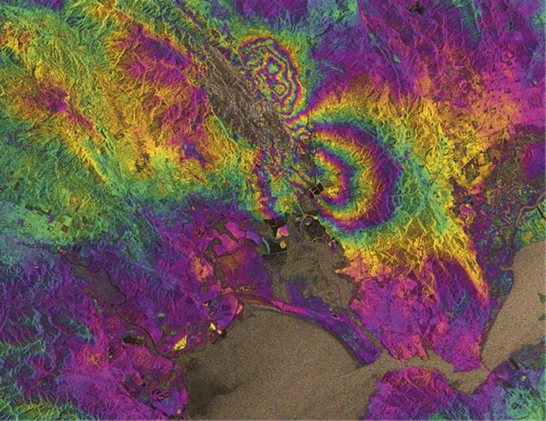 Europas Sentinel-1A-satellit, der udsender og modtager radarsignaler, var sendt op få måneder før og havde passeret over Napa Valley både den 7. og 31. august. Ud fra de to billeder er der beregnet et interferogram, som viser, hvordan jorden bevægede sig under jordskælvet. Deformation på jorden forårsager faseændringer i radarsignalet, der vises som regnbuemønstre, for eksempel de runde former omkring Napa-dalen i den centrale del af billedet. Hver farvecyklus svarer til en bevægelse på 28 mm, og den maksimale bevægelse er på mere end 10 cm. Interferogrammet er mest intenst omkring forkastningen, som derfor kunne kortlægges i detaljer. Det var for øvrigt en forkastning, der ikke blev betragtet som farlig før jordskælvet den 24. august 2014.