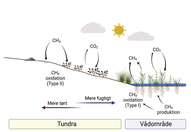 Feltmålinger i Grønland kombineret med laboratorieforsøg og modelstudier viser, at de udbredte tørre egne af Grønland optager mere methan, end der frigives fra vådområder. Dette optag vil formentlig blot stige under fremtidige klimaændringer.