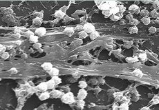 Ortopædiske og andre implantater som kunstige hofter, skruer ved brækkede knogler eller pacemakere. Biofilm kan gøre infektioner meget svære at behandle og føre til, at implantatet må udskiftes.