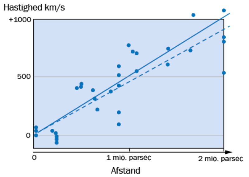 Med nye, store teleskoper, der blev bygget i USA omkring århundredskiftet, lykkedes det ikke blot astronomerne at måle afstanden til “tåger”, som viste sig at være selvstændige galakser langt fra Mælkevejen, de kunne også bedømme galaksernes hastigheder mod os eller væk fra os.