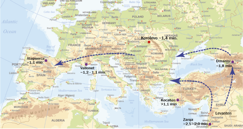 Det mest sandsynlige scenarie er, at disse tidlige mennesker migrerede ud af Afrika gennem Levanten, hvor man i Jordan har fundet Mode-1-stenredskaber, der er op til 2,5 millioner år gamle, og nåede Kaukasus for 1,8 millioner år siden. Det sydlige Kaukasus har muligvis fungeret som en slags refugium, hvorfra disse tidlige mennesker har migreret ud i verden, da klimaet blev varmere, og vegetationen ændrede sig.