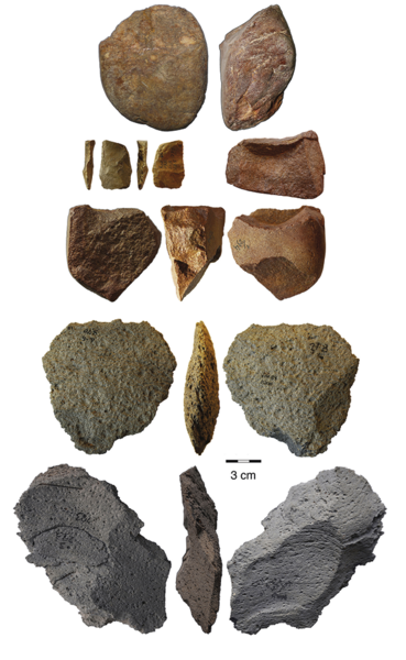 Nederst, begravet under flere lag af flodsedimenter og vindblæst støv, fandt arkæologerne nogle meget primitive stenredskaber, der minder om de første kendte stenredskaber fra Afrika, også kendt som Mode-1 eller “Oldowan”-stenredskaber. Men at datere disse primitive stenredskaber var ikke en let opgave, og de første forsøg på at gøre dette gav modstridende resultater, der var umulige at reproducere.