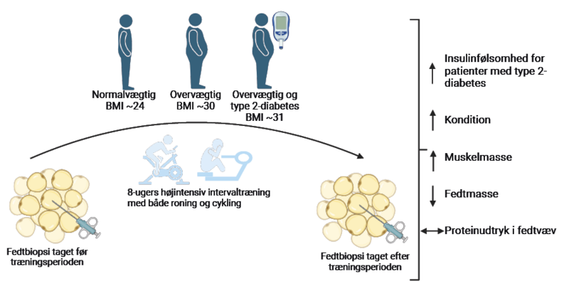 Mens otte ugers intervaltræning hos patienter med type 2-diabetes udmønter sig i øget insulinfølsomhed og generelt som øget kondition og muskelmasse og mindre fedtmasse, ses der umiddelbart ingen forskel på, hvilke proteiner der udtrykkes i fedtvævet før og efter træningsforløbet. Det tyder på, at der ikke sker ændringer i de kemiske processer i fedtcellerne som respons på træning. Men om det også gør sig gældende ved længere tids træning er endnu uvist.