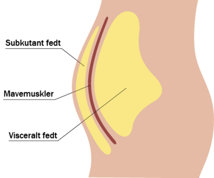 Ophobning af visceralt fedt er i højere grad en subkutant fedt forbundet med en øget risiko for hjertekarsygdomme.