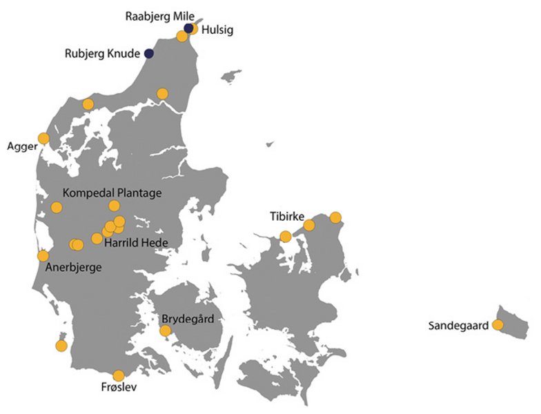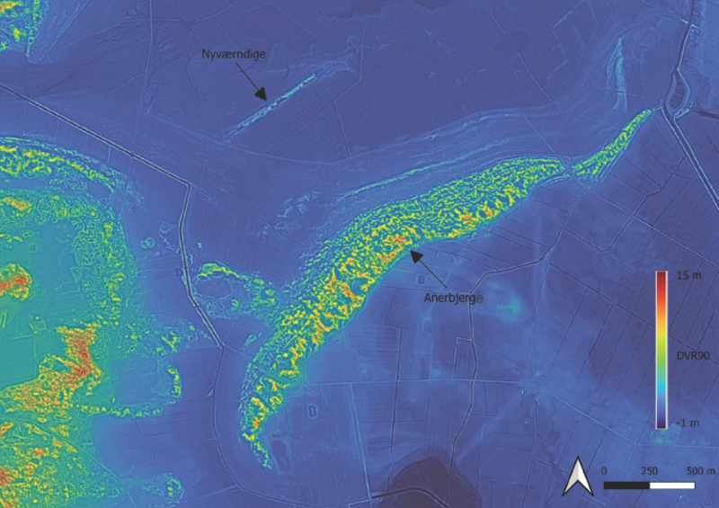 Det, som dog virkelig har overrasket, er, hvor udbredte sandflugtsdiger viste sig at være, da vi undersøgte den digitale højdemodel og søgte på de forskellige navne, man har brugt igennem tiden. Klitlandskaberne på Harrild Hede og ved Anerbjerge er nemlig langt fra alene. Sandflugtsdiger viser sig at findes spredt ud over hele landet, men ingen har før koblet dem sammen.