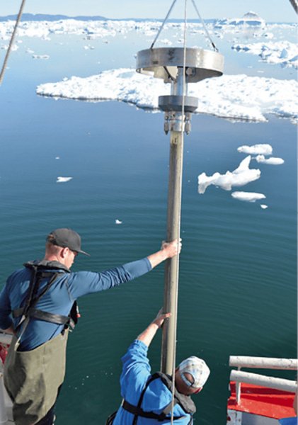 Forskerne har udviklet forfinede metoder til udtagning af kerner i havets sedimenter og til at identificere plast ud fra deres polymersammensætning ved at analysere prøvernes samlede indhold. Ved at jage et rør (som det på billedet) ned i havbunden på 850 meters dybde i Diskobugten ud for Grønlands vestkyst kunne forskerne hente kerner af havbunden op til analyse. Prøverne blev dateret ved hjælp af isotoper af naturligt bly og cæsiumisotoper dannet som følge af atombombesprængninger i atmosfæren i 1960’erne, som har en halveringstid på cirka 30 år.