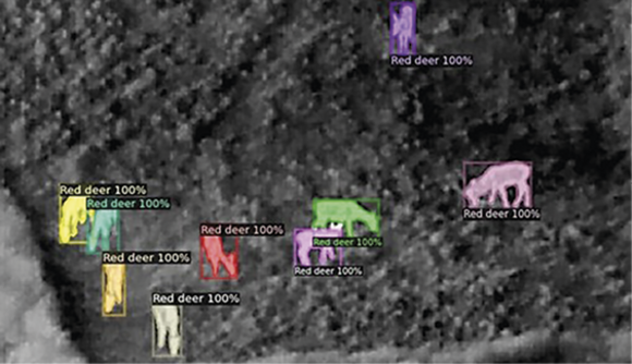 Vi har brugt YOLO til at genkende krondyr og dådyr på termiske dronevideoer optaget i Lyngby Hede og Nationalpark Thy. Det viser, at teknologien kan bruges til monitering af store pattedyr, men YOLO er udfordret, når man vil gå fra simpel artsgenkendelse til mere avanceret adfærdsanalyse.