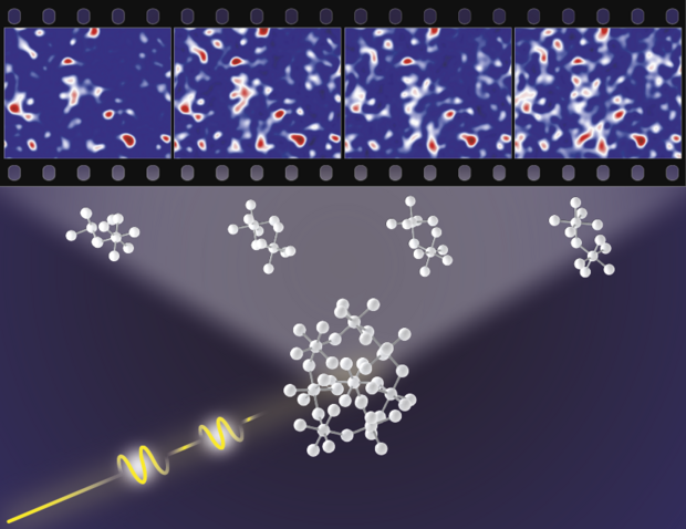 Med en gigantisk røntgenlasermaskine – en såkaldt XFEL – kan forskere nu tage billeder så hurtigt efter hinanden og med så høj opløsning, at man kan registrere atomernes bevægelse i uordnede materialer som glas eller en strømmende væske.