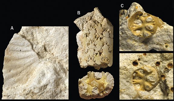 Ammonitterne er fundet i Cerithium-kalken, helt op til 38 centimeter over Fiskeleret, hvilket giver en omtrentlig alder på mindst 60.000 år efter den store masseuddøen. De arter af ammonitter, der indtil videre er fundet rester af i Cerithium-kalken, tilhører tre forskellige grupper (slægter). Den mest almindelige er den oprullede form Hoploscaphites, og derefter den lige ammonit Baculites.