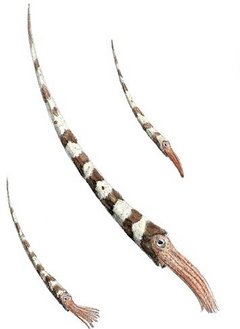 D: Baculites. Ammonit med lang, glat og lige skal.