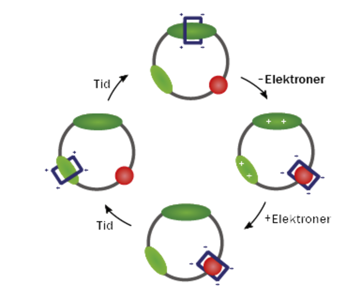 »De molekyler, vi arbejder med, kaldes catenaner og rotaxaner, hvor catenaner er to sammenlåste ringe, mens rotaxaner er et “håndvægtsformet”-molekyle med en ring omkring. I disse systemer kan vi få ringen til at bevæge sig, og det er den bevægelse, som kan udnyttes i molekylære maskiner. Vi bruger primært elektroner (strøm) eller kemikalier som brændstof, men man kan også lave systemer, der bruger andre energikilder, eksempelvis lys,« forklarer Rikke Kristensen.