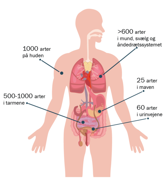 Mikroberne bor i og på os mennesker, fordi vi skaber nogle rigtig gode betingelser for dem i form af perfekt temperatur og fugtighed samt en konstant strøm af næringsstoffer, så de kan vokse og formere sig.
