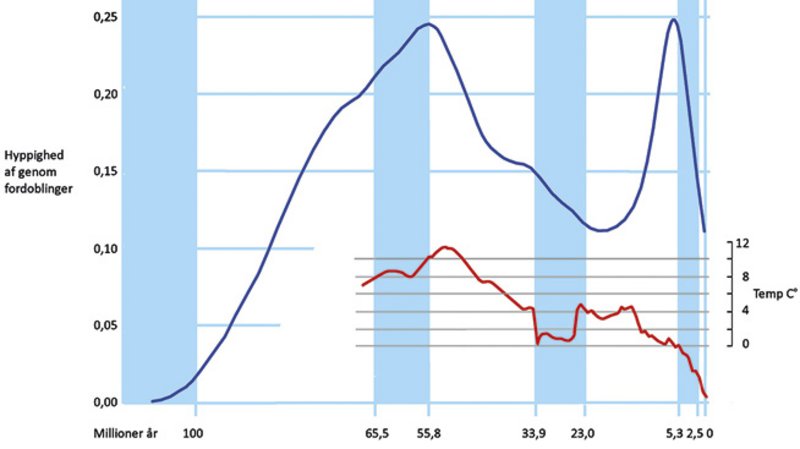 Der ligger sandsynligvis både ydre faktorer og biologiske egenskaber bag blomsterplanternes overvældende artstal. Siden Kridttiden er gennemsnitstemperaturen for vandsøjlen i verdenshavene faldet fra omkring 20 til få grader, dog med markante varmeperioder undervejs.