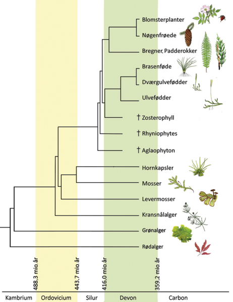 Planter har en kort tidshistorie på landjorden på blot 460-500 millioner år sammenlignet med de mindst 2 milliarder år, hvor der har levet alger i ferskvand og havet. De første landplanter var mosser, der udvikledes fra ferskvandsgrønalger af typen koblingsalger.