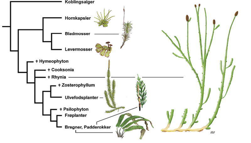 Figuren viser et stamtræ for mosser og karsporeplanters, inklusive de uddøde karsporeplanter Hymenophyton, Cooksonia og Rhynia, som knyttes til ulvefødder og senere bregner og padderokker. På dette stamtræ har mosser og karsporeplanter (ulvefodsplanter og bregner inklusive padderokker) en parallel udvikling fra en fælles stamfader. Endvidere står levermosser og bladmosser tættere på hinanden end hornkapsler.