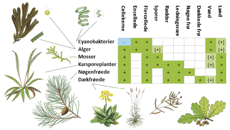 Når biologer taler om “planteliv”, omfatter det i virkeligheden tre hovedgrupper, der er i stand til at udføre fotosyntese, nemlig cyanobakterier, alger og landplanter. Cyanobakterierne er uden cellekerne, og de opstod allerede for omkring 3.500 millioner år siden. Algerne er omkring 1.800 millioner år gamle. De har cellekerne, og deres grønkorn (kloroplaster) stammer fra symbiose med cyanobakterier.
