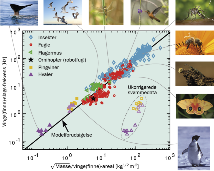 Ved rent teoretiske overvejelser kan man udlede en simpel ligning, der forudsiger, hvor hurtigt en fugl slår med vingerne for at holde sig i luften. Måledata fra flere end 400 flyvende dyr viser, at denne ligning gælder generelt på tværs af arter, kropsstørrelser og flyvestil.