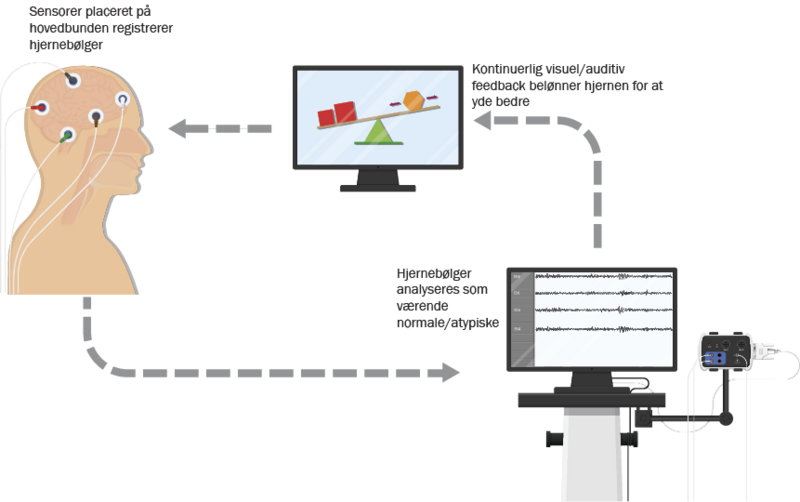 Mange historier fra fiktionens verden har gennem tiden udforsket idéen om at påvirke hjernen gennem teknologi. I dag gør såkaldt neurofeedback den vision til virkelighed. Neurofeedback, eller elektroencefalografisk biofeedback (EEG-biofeedback), er en computerbaseret terapeutisk teknik, der er designet til at hjælpe folk med at regulere deres hjerneaktivitet med det formål at reducere generende symptomer. Teknikken indebærer at placere elektroder på hovedbunden for at måle hjerneaktiviteten, som derefter analyseres af en computer. Klienten modtager feedback i realtid, såsom en video eller en lyd, der ændrer sig baseret på deres hjerneaktivitet. Når hjernen producerer de ønskede mønstre, opmuntrer feedbacken dem til at fortsætte. Over tid hjælper dette klienten med at lære at kontrollere sin hjerneaktivitet, hvilket fører til bedre fokus og større mental kontrol.