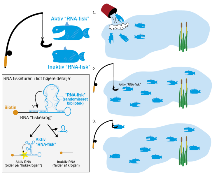 Konkret søgte Bartel og Szostak efter RNA, der kan sætte RNA-molekyler sammen, og de fremstillede derfor en ׅ“RNA-fiskekrog”, der binder sig til de aktive RNA-sekvenser i søen, der har netop den egenskab.
