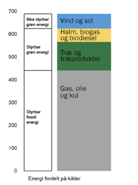 Energiproduktion i Danmark kan opdeles i styrbar energi og ikke-styrbar energi. Styrbare energikilder er for eksempel fossile brændsler og biobrændsler samt atomkraft, som kan op- og nedskaleres efter behov. Ikke-styrbare energikilder som vind- og solenergi er derimod kun til rådighed, når det for eksempel blæser eller solen skinner. Anvendelse af Ikke-styrbar energi forudsætter, at der investeres i 100 % backup fra styrbare energikilder, når den ikke styrbare energi i perioder yder lidt eller ingenting.