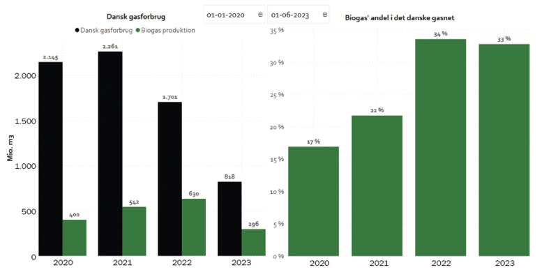 Tidligere var den mest almindelige praksis at afbrænde biogassen i en kedel eller motor for at kunne få varme og elektricitet. I dag opgraderer moderne biogasanlæg biogassen til en kvalitet lig den, man finder i fossil naturgas (>95% metan). Denne gas kan bruges til at erstatte vores nuværende forbrug af fossil naturgas, til gavn for både klima og forsyningssikkerhed, så man ikke er afhængig af naturgas fra andre lande. Biogassektoren er i dag voksende i både Danmark og resten af Europa. Andelen af biometan på naturgasnettet har derfor også være stigende de sidste par år og udgjorde i 2022 34% af gassen på naturgasnettet.