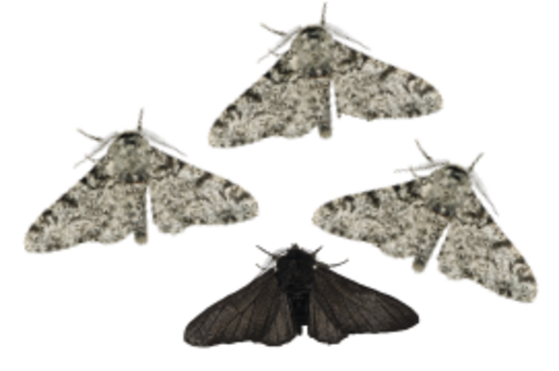 Under den industrielle revolution fik de mørkfarvede birkemålere efterhånden en overlevelsesfordel på birketræer, der blev tilsodet af forurening, fordi de nu var bedre camoufleret end deres lyse artsfæller. Det betød, at der over tid blev flere og flere mørkfarvede birkemålere i forhold til lyse i populationen på grund af selektion.