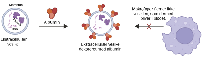 Albumin genkendes af immunsystemet som en del af kroppen selv. Når vesiklerne er bundet til albumin, bliver de derfor i mindre grad opslugt af de specialiserede celler i lever og milt. Det betyder, at de forbliver længere i blodbanen og har større sandsynlighed for at nå frem til målet.