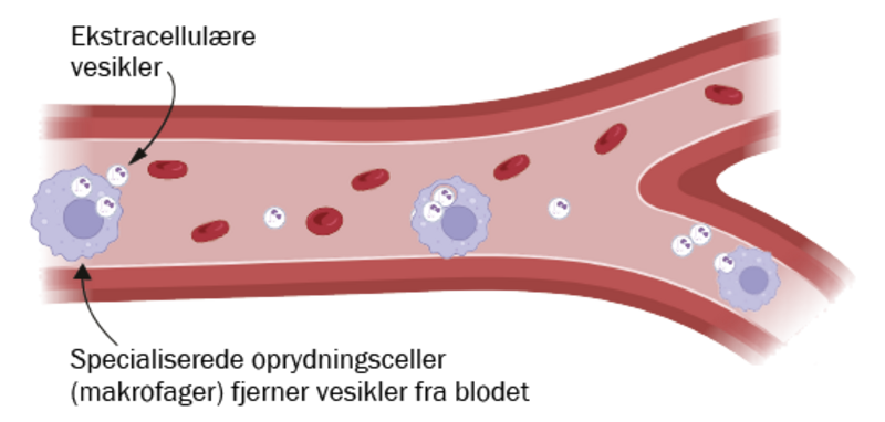 Ekstracellulære vesikler, eller blot vesikler, er typisk 30-1000 nanometer store og findes blandt andet i blodet, rygmarvsvæsken (cerebrospinalvæsken) og urinen. En vesikel er en slags afsnøret blære. Det, der gør dem særligt interessante i behandlingssammenhænge, er, at de stammer fra kroppens egne celler og derfor ofte ikke er skadelige for kroppen.