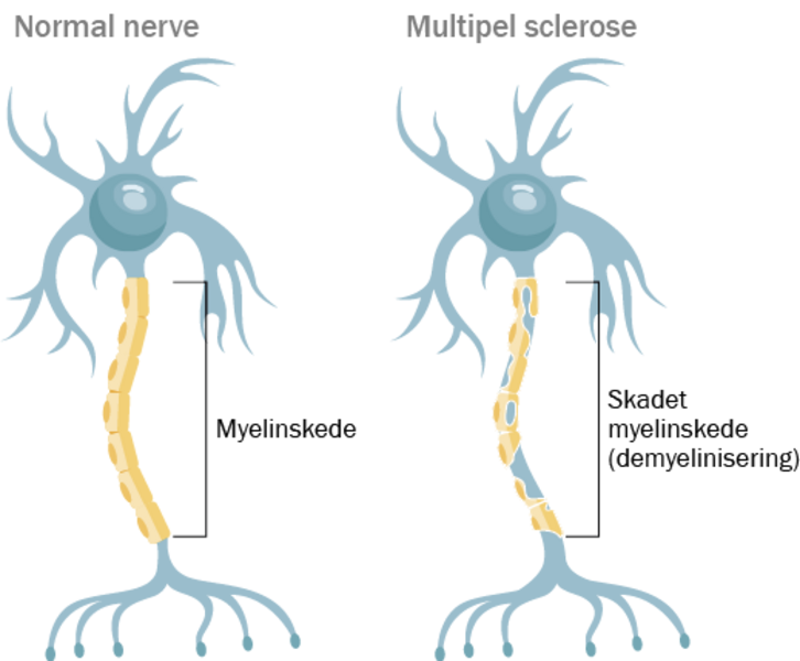 Multipel sclerose (MS, også kaldet dissemineret sclerose) er en kronisk autoimmun sygdom, hvor immunsystemet angriber nervecellernes beskyttende myelinskede i centralnervesystemet. Det fører til betændelse, arvæv og gradvis funktionsnedsættelse. Sygdommen rammer typisk unge voksne, især kvinder, og Danmark er blandt de lande med flest tilfælde. Omkring 18.000 danskere lever med MS, og hvert år diagnosticeres 400-600 nye patienter.