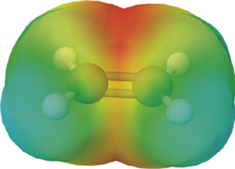 Kulstof kan danne en dobbeltbinding til andre kulstofatomer og til for eksempel nitrogen- og oxygenatomer. En dobbeltbinding består af to bindingstyper, der traditionelt kaldes for henholdsvis en sigma-binding og en pi-binding (ofte blot angivet med det græske bogstav for henholdsvis sigma og pi, det vil sige σ-binding og π-binding). I sigma-bindingen befinder de to elektroner sig i en sky symmetrisk omkring en akse imellem de to atomer. I pi-bindingen danner de to elektroner en sky, der ligger noget længere væk og som minder lidt om burgerbolle.