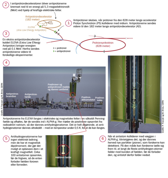 På det fælleseuropæiske center for højenergifysik CERN forsøger fysikerne at besvare det grundlæggende spørgsmål, om antistof opfører sig på samme måde som almindeligt stof. Det seneste forsøg viser, at atomer af antihydrogen og atomer af almindeligt hydrogen opfører sig ens i et tyngdefelt: Begge falder nedad.