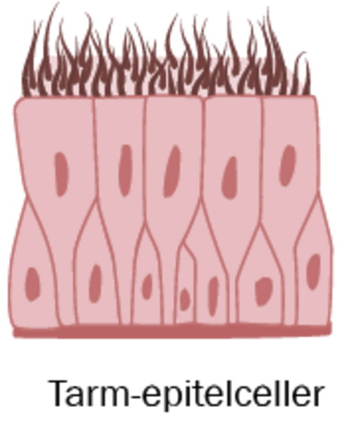 Et andet eksempel er tarmens epitelceller, som er søjleformede og tæt pakkede i et lag, der dækker indersiden af tyndtarmen. Disse celler har en stærkt polariseret struktur med mikrovilli på overfladen ud mod indersiden af tarmen. Mikrovilli øger celleoverfladen markant og muliggør effektiv absorption af næringsstoffer. Samtidig danner cellernes form en selektiv barriere, der forhindrer skadelige stoffer i at trænge ind i kroppen.