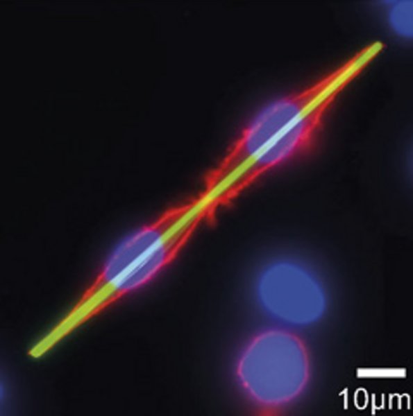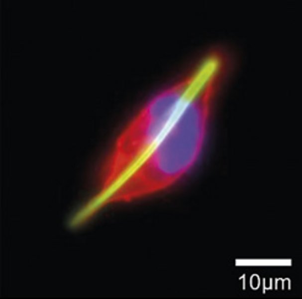 I andre celletyper, for eksempel fibroblastceller, der er mere robuste, kan stang-krystallen ikke trænge ud gennem cellemembranen, så her begynder stangen i stedet at bøje, indtil den knækker helt. Forskerne har endda udviklet teknikker til at undersøge, hvor den mekaniske påvirkning sker mellem stang og celle, og hvor stor den mekaniske kraft, der bliver skabt af cellen, er. Som eksempel viste et af disse eksperimenter, at en celle skulle producere 340 nanoNewton for at knække krystallen.