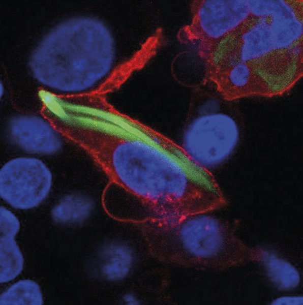 I nogle celletyper bliver presset fra stangen så højt, at stangen trænger ud gennem cellemembranen og dermed effektivt slår cellen ihjel, simpelthen ved at spidde den indefra. Der er lidt ”Alien” over det, hvis man skal lave en filmanalogi.