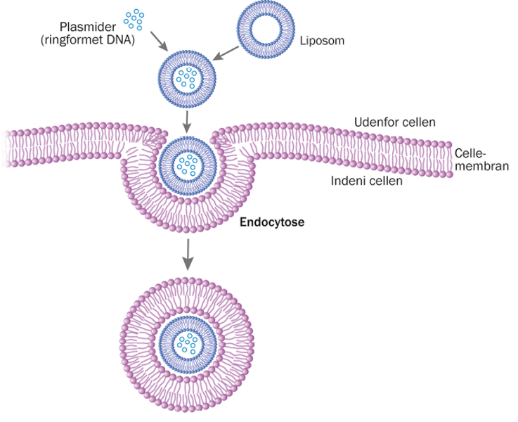 Opskriften på et fluorescerende krystallinsk protein smugles ind i cellen i form af et lille ringformet DNA-molekyle (et plasmid). Hertil benytter forskerne små “transportkugler” kaldet liposomer), der optages af cellen ved en proces kaldet endocytose, hvor cellemembranen danner afsnørede blærer uden om liposomet. Herefter producerer cellen selv proteinet, som var det dets eget.