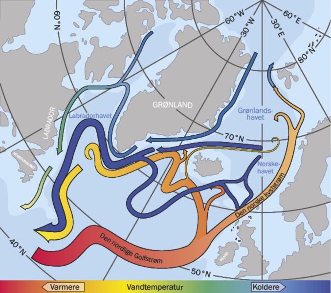 Når ferskvand strømmer ud fra Indlandsisen, ændrer det ved den såkaldte termohaline cirkulation i verdens oceaner. Hurtigt beskrevet flyder havstrømme i tre dimensioner og bevæger sig rundt om hele kloden i et meget fastlåst mønster. Varmt vand fra troperne flyder mod nord, opvarmer blandt andet Danmark, før vandet afkøles, søger mod havbunden for derefter at forsvinde sydpå igen.