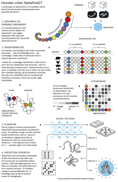 Modellen kaldes for AlphaFold2, og det er for denne præstation, at Hassabis og Jumper modtager Nobelprisen i kemi i 2024. AlphaFold2 kan forudsige gigantiske proteinstrukturer helt ned til atomar præcision og er altså i mange tilfælde konkurrencedygtig med klassiske laboratoriemetoder, såsom røntgenkrystallografi. Forskellen er, at det kan tage årevis at kortlægge et protein i laboratoriet.
