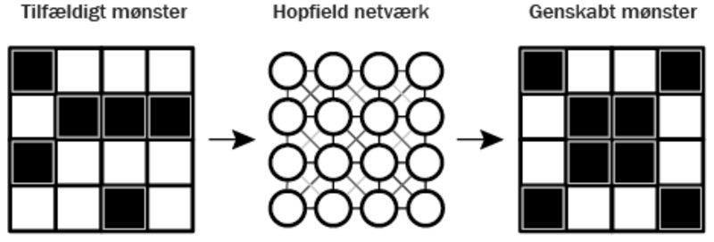 John J. Hopfield udviklede Hopfield-netværket – en metode til at skabe computerhukommelse inspireret af, hvordan menneskets hjerne fungerer. Netværket bruger såkaldte neuroner, små enheder, der alle er forbundet med hinanden for at lære og gemme information. Hopfield-netværket er inspireret af fysikkens måde at beskrive magnetiske materialer på. Ligesom små magneter i et materiale kan finde et mønster, hvor de for eksempel alle peger i samme retning, kan neuronerne i et Hopfield-netværk finde og huske mønstre i data. Netværket “lærer” derfor at gemme information på samme måde, som magneter kan danne stabile mønstre i et magnetisk materiale.
