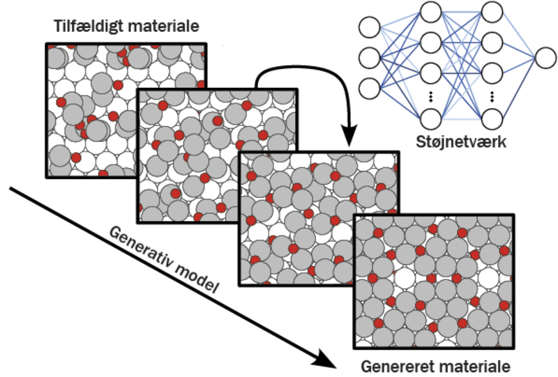 I forbindelse med et forskningsophold på University of Toronto, hvor også Nobelprismodtager Geoffrey E. Hinton er professor, har vi udviklet generativ AI til ikke blot at kunne generere billeder, men med samme grundlæggende teknologi, at kunne opfinde nye materialer. Den metode, vi har udviklet, er en såkaldt diffusionsmodel for materialer, som lærer at “rydde op” i materialernes struktur og optimere atomerne, så de placeres på bedre måder. Det kunne være måder, der giver en lavere energi – eller i det mere generelle tilfælde – måder, der forbedrer egenskaberne af materialet.