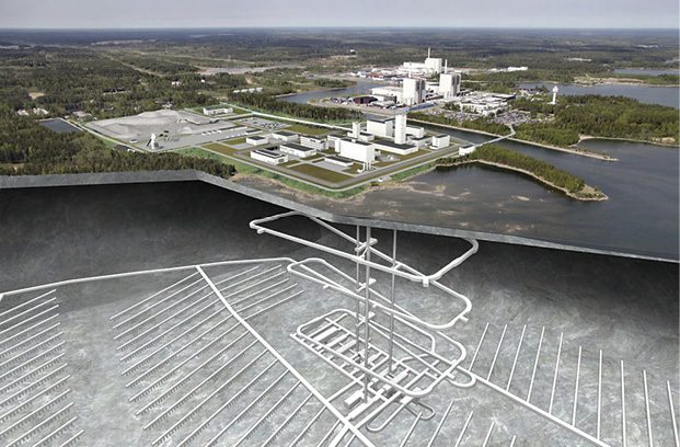 I Forsmark i Sverige er konstruktionen af et anlæg med samme KSB-3-teknologi som den finske Onkalo-facilitet blevet påbegyndt her i 2025. Figuren viser, hvordan faciliteten vil tage sig ud, når den er fuldt udbygget – hvilket den først forventes at være engang i 2080’erne. Anlægget vil dog efter planen blive taget i brug indenfor cirka 10 år.