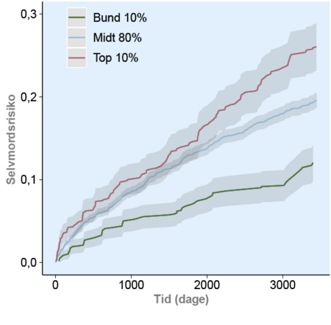 »Det viste sig, at personer diagnosticeret med depression i den estiske biobank kunne have over dobbelt så høj risiko for at forsøge selvmord indenfor 10 år, afhængigt af om de scorede højt eller lavt i denne risikoanalyse (26 % mod 12 %)«, fortæller John Shorter.